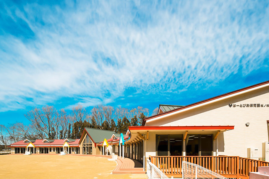 はーとぴあ保育園桜ノ牧は、近くには茨城県庁や植物公園もあり、田畑が広がる自然豊かな環境にあります。また、恵まれた広い園庭では毎日身体を伸び伸びと動かして遊ぶ中、子どもたちの笑顔溢れる笑い声が絶えず聞こえてきます。日々の保育活動も年齢を超える異年齢保育をすることで、お互いを思いやる気持ちを育む保育を目指しています。